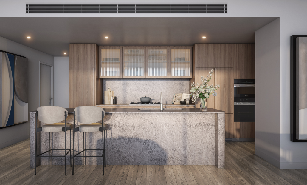 This spacious and light-filled three-bedroom residence encompasses soft curves, warm timbers, premium fittings and feature stone creating a sophisticated, timeless atmosphere. Experience a life of absolute elegance from your north-facing sanctuary framed by leafy outlooks and garden spaces.