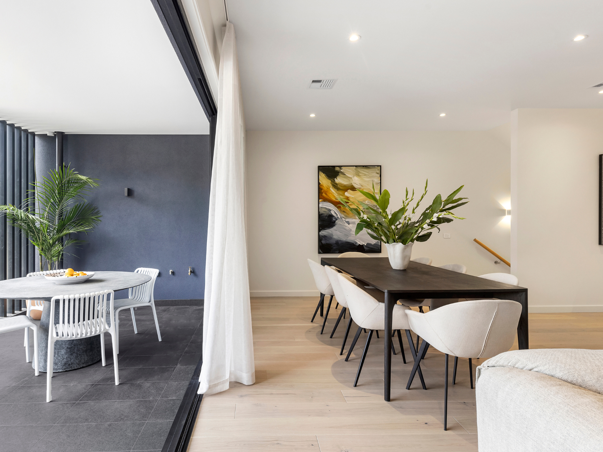 - Open-plan living and dining with engineered timber flooring, flowing to an expansive balcony with breathtaking views