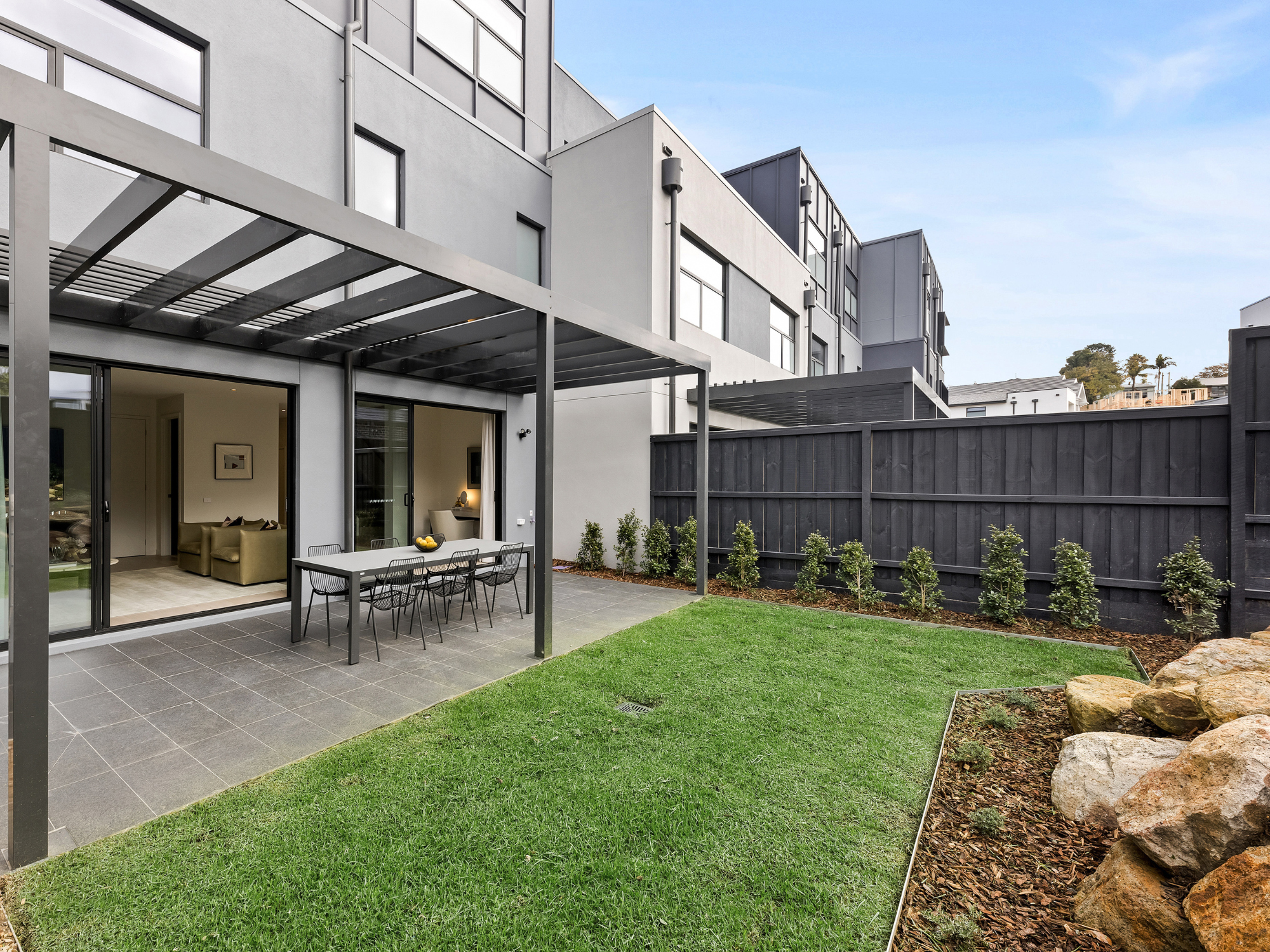 - North-facing ground-floor living area opening onto a landscaped courtyard and garden.