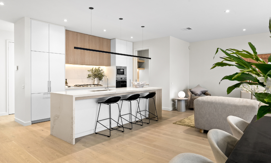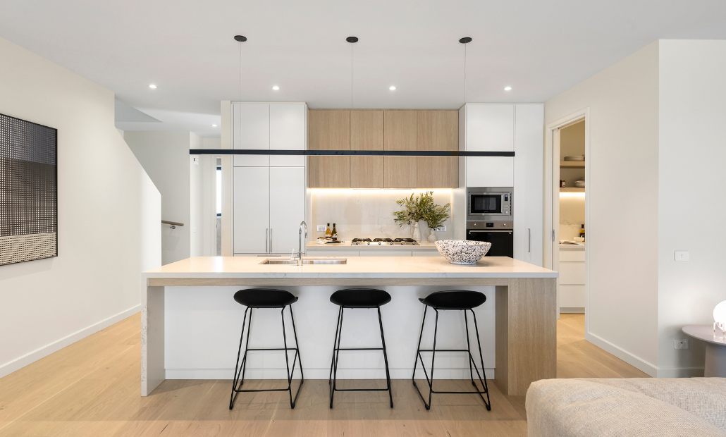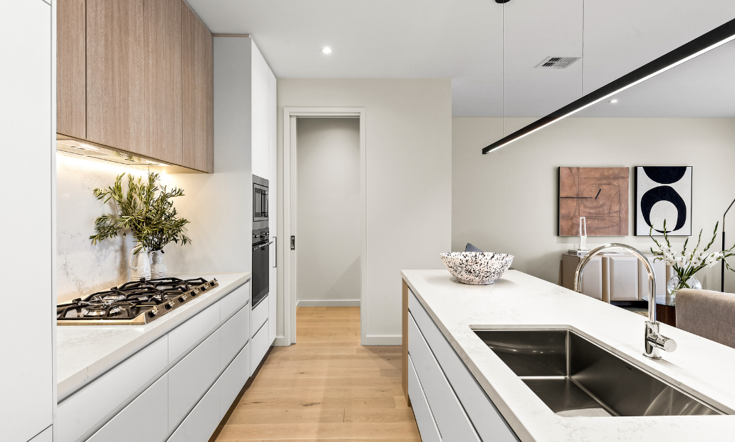 - Low-maintenance, future-proofed design with a luxury kitchen, butler’s pantry, and premium European appliances